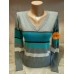 Джемпер в'язаний із тонкої нитки. Виробник: Туреччина Колір: Сірий/Бірюза Горловина: Мис Состав: 65%коттон 35%нейлоен Розмір: 44-48р Напівобхват грудей 40 см тягнеться до 50 см Довжина виробу 55 см Довжина рукава 59-60 с...